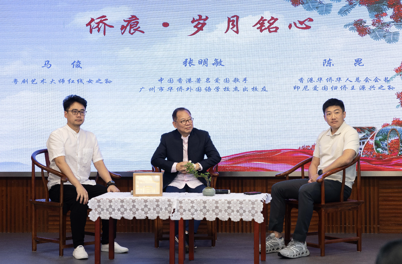 “洋装虽然穿在身,我心依然是中国心……”在5月15日广州华侨新村奠基70周年系列活动上,华侨小学校友张明敏的一曲《我的中国心》,歌声激昂,爱国之情溢满全场。随后,印尼爱国归侨王源兴的外孙陈昆、粤剧艺术大师红线女的孙子马俊、菲律宾爱国归侨黄长水的孙子黄楚基、中国澳门爱国实业家何贤的孙子何敬康等华侨新村的建设者、捐资者、名人居住者的后代,共同讲述《往昔・侨爱筑家园》《今朝・祖国护侨情》《明日・侨心向未来》,带领现场观众纵览华侨新村的过去、现在与未来。